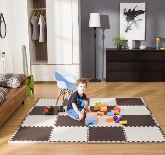 Trei plăci mari cu margini se îmbină ușor într-o suprafață de 180 × 60 cm sau pot fi extinse cu seturi suplimentare. Ideal pentru camera copilului sau living.