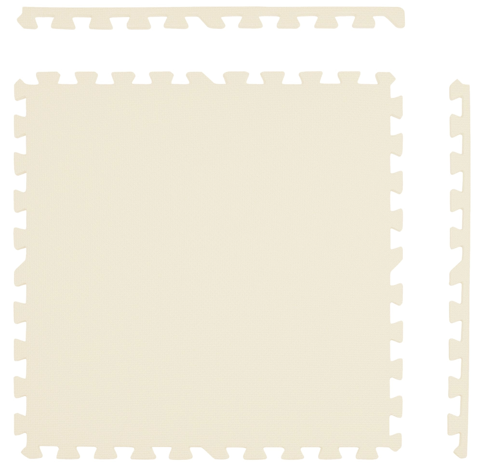 Culoarea neutră crem se potrivește oricărui interior. Piesele pot fi conectate liber în cadrul aceluiași model pentru a crea o suprafață mai mare sau pentru a forma figuri 3D ce stimulează imaginația. Textura antiderapantă sprijină târârea în siguranță și primii pași.