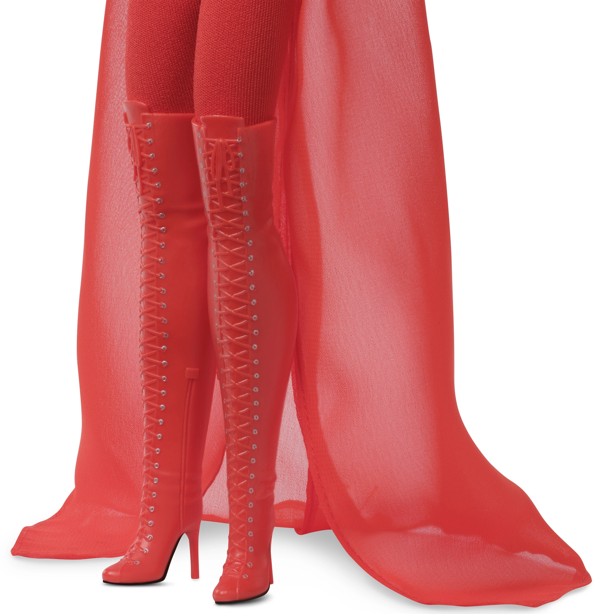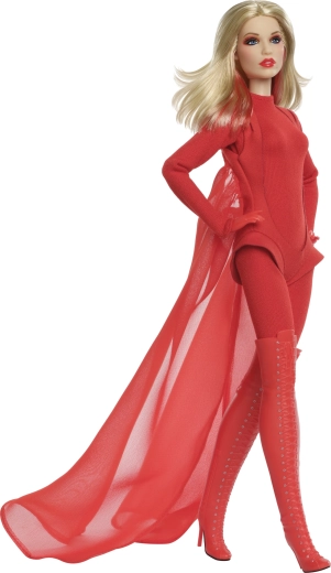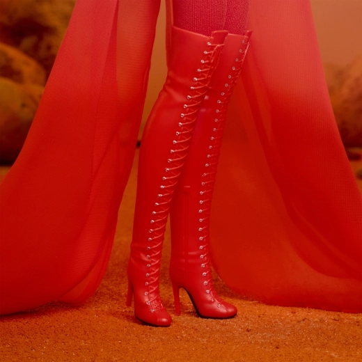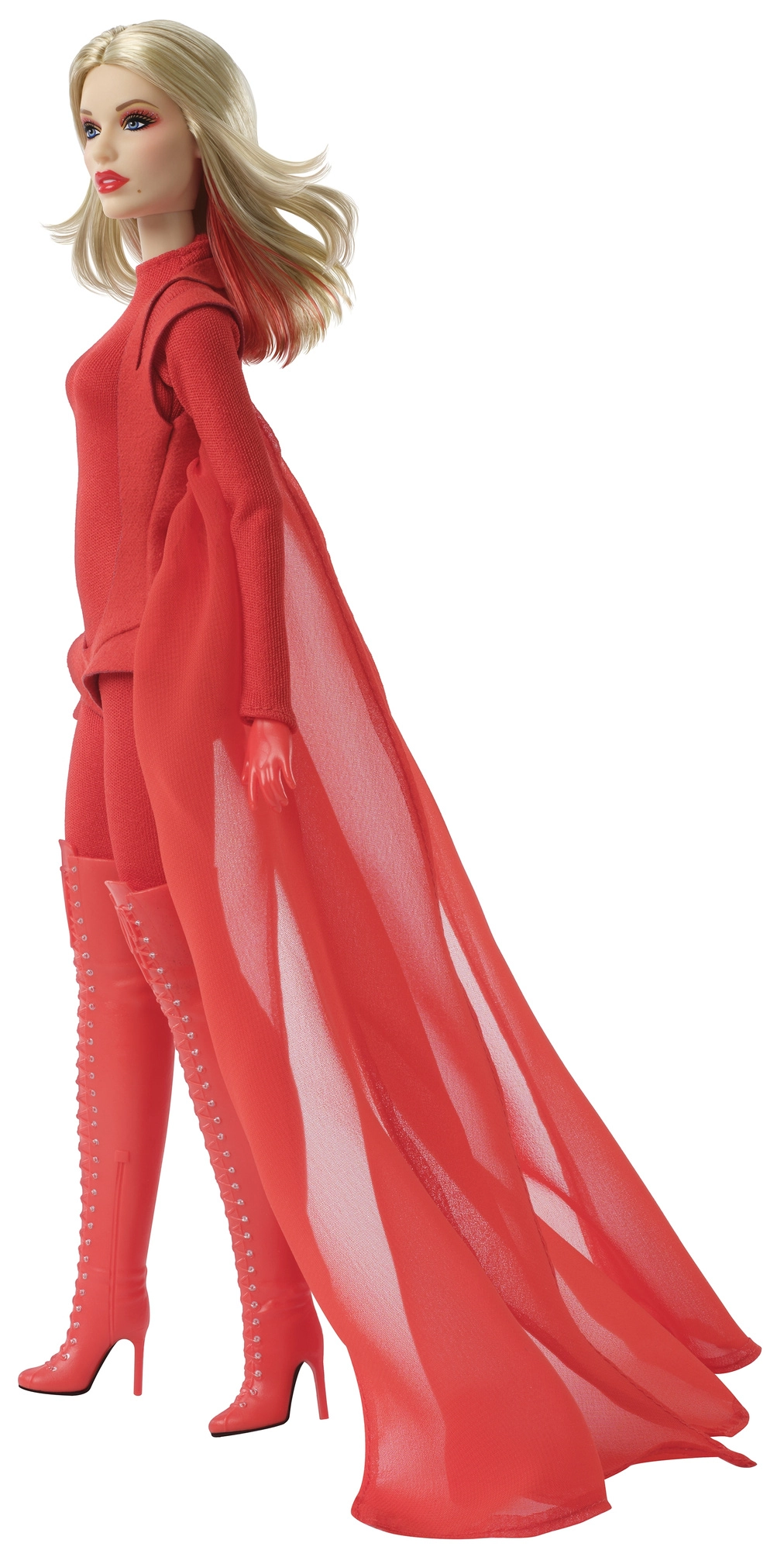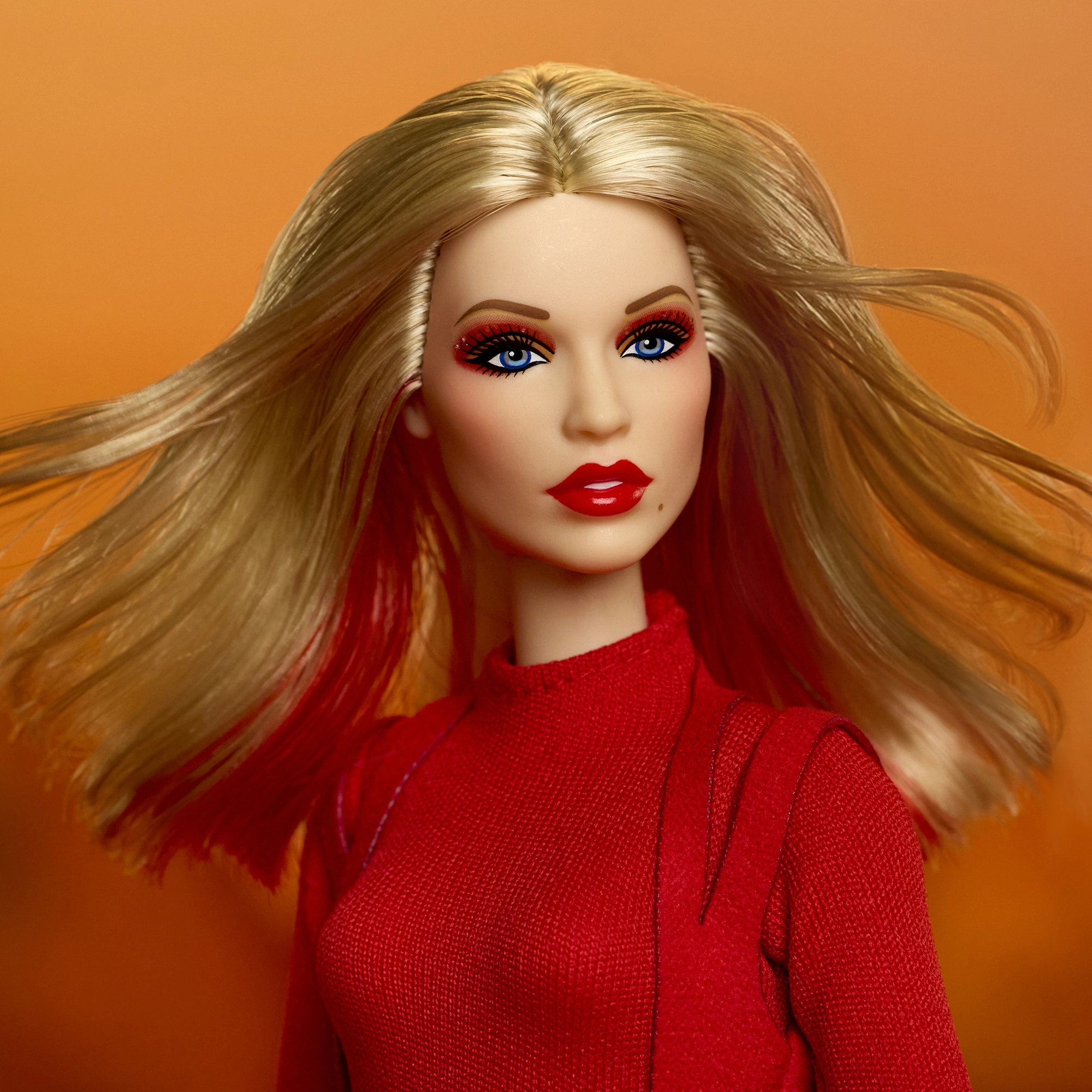 Această ediție de colecție Barbie aduce un omagiu femeilor inspiraționale din seria Role Models. Păpușa o înfățișează pe Kylie Minogue într-o stilizare roșie dramatică, inspirată de un videoclip muzical, cu păr blond lung și discrete șuvițe roșii, ochi albaștri și machiaj precis pentru un look autentic de scenă.