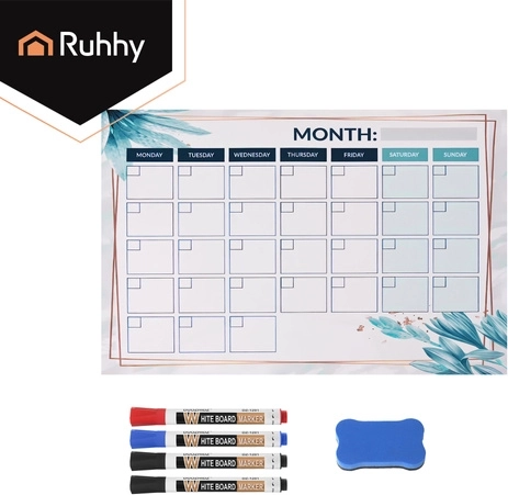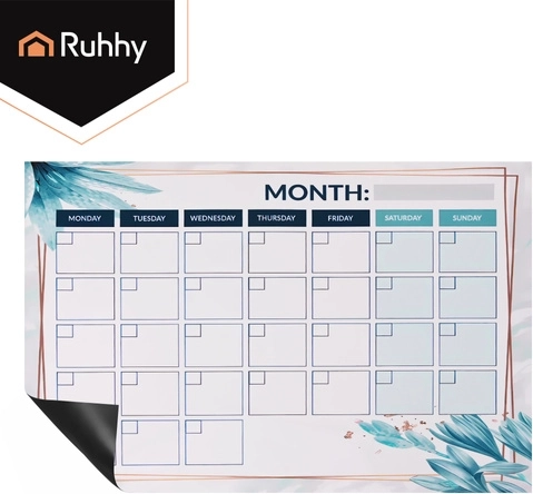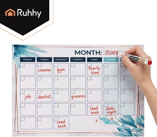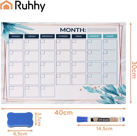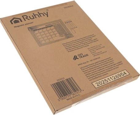 Planificatorul magnetic RUHHY, cu dimensiuni de 30 × 40 cm, este un centru practic pentru organizarea casei. Datorită suprafeței ștergătoare la uscat permite notarea rapidă a planurilor, ștergerea ușoară fără urme și gestionarea clară a zilei, săptămânii și lunii. Pe frigider este mereu la vedere, stă ferm datorită magnetului, iar în pachet găsiți 4 markere și un burete magnetic pentru utilizare imediată.