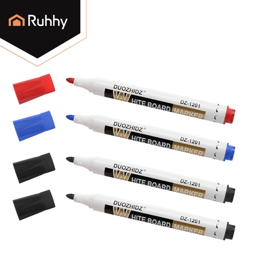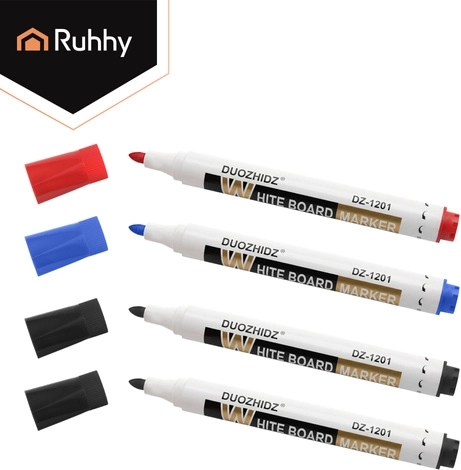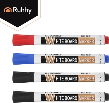 - Gata de utilizare imediat: 4 markere ștergătoare la uscat (2× negru, 1× roșu, 1× albastru) și burete magnetic dublu în pachet