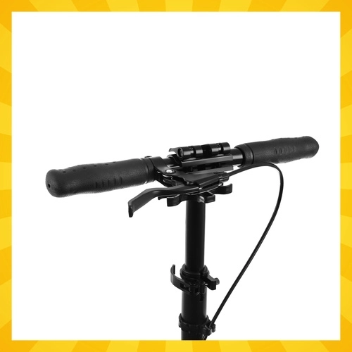 Oprirea în siguranță este asigurată de frâna pe disc de mână, completată de frâna de picior din aripa spate. Reglajul ghidonului pe 4 trepte garantează o poziție comodă pentru copii și adulți. Structura din aluminiu este ușoară și durabilă, iar pliarea rapidă și cricul practic facilitează parcarea și transportul în mijloacele de transport în comun.