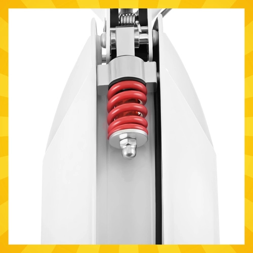 Trotineta se pliază ușor la o dimensiune compactă. Suspensia spate atenuează șocurile, iar reglajul ghidonului în 4 trepte se potrivește atât copiilor, cât și adulților.