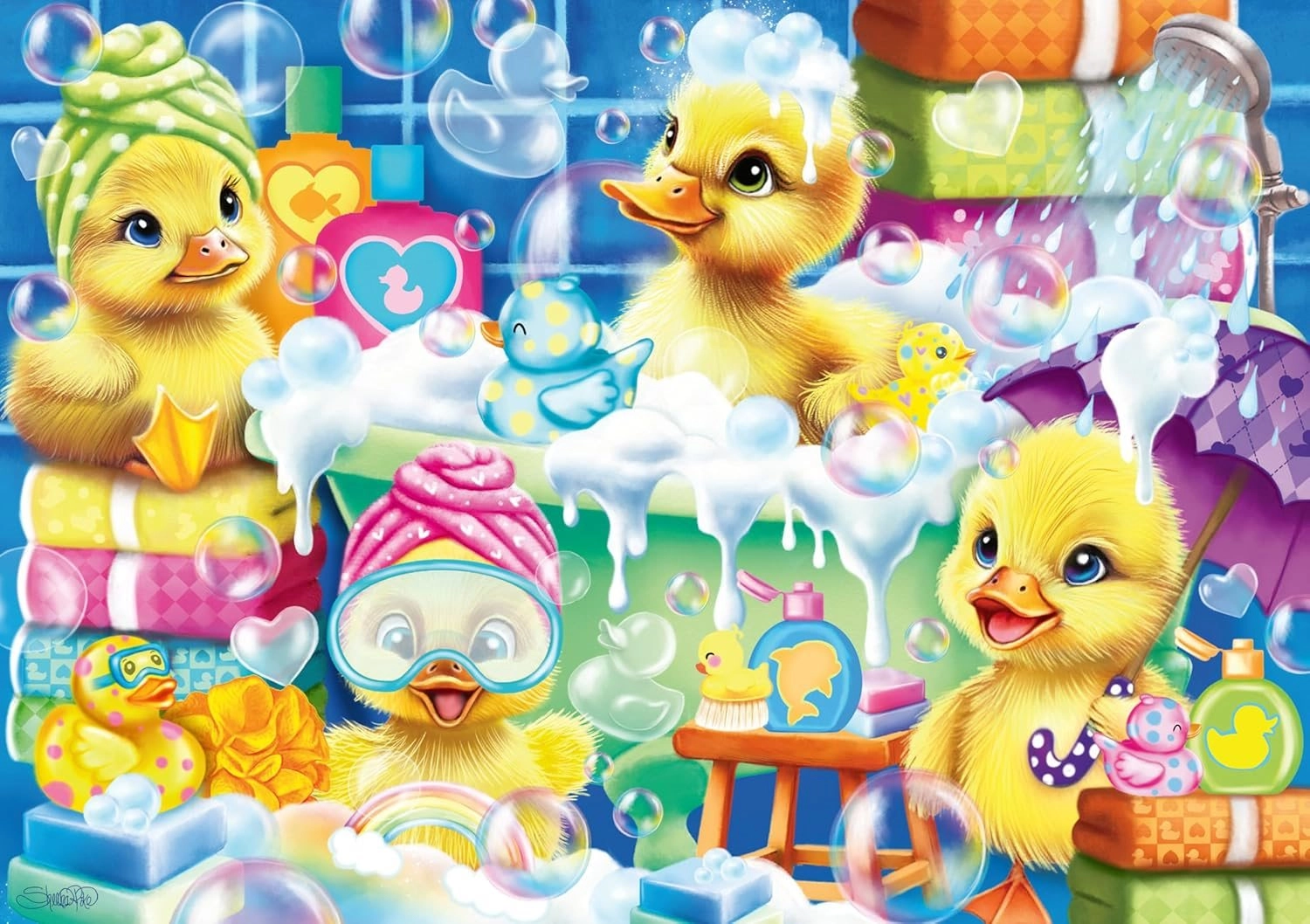 Acest puzzle este perfect ca cadou sau ca activitate pentru o după-amiază ploioasă. Datorită motivului atractiv cu rățuște, asamblarea va fi pe placul copiilor și al părinților deopotrivă.