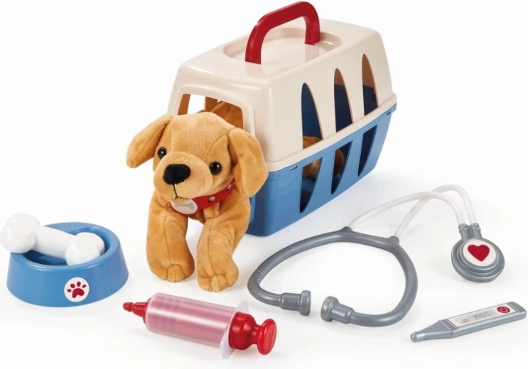 Setul include cățel, bol, os și instrumente medicale de bază – stetoscop, termometru și seringă. Dimensiunile compacte ale trollerului asigură transport și depozitare ușoare.