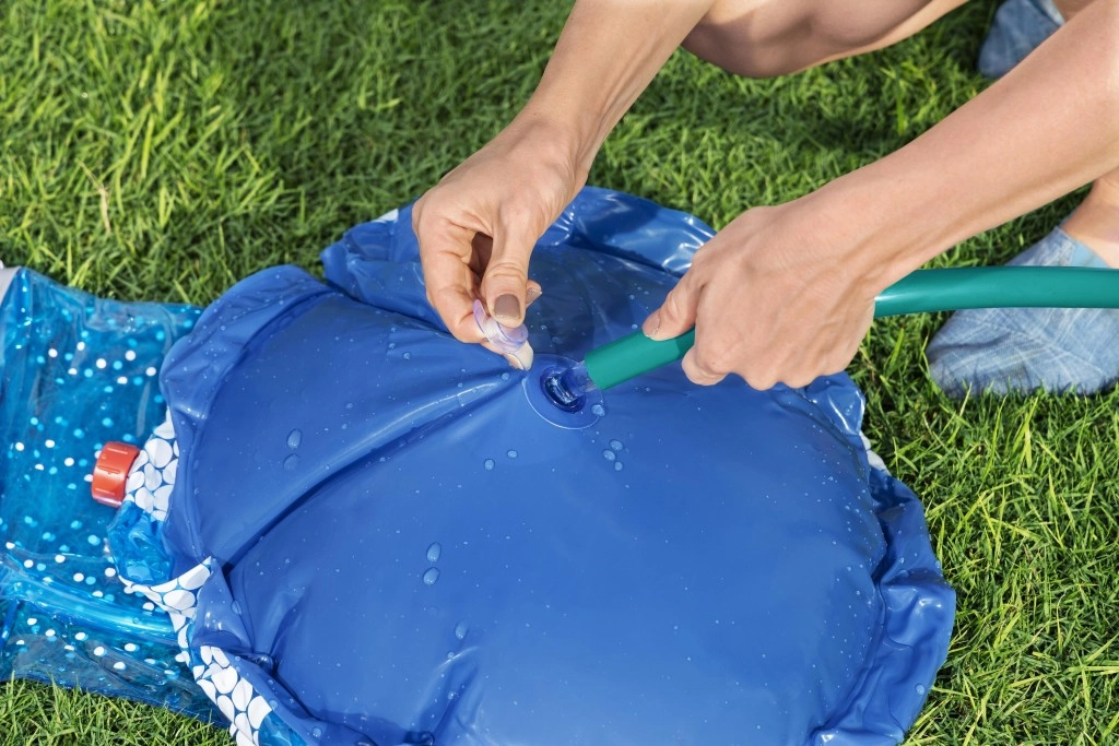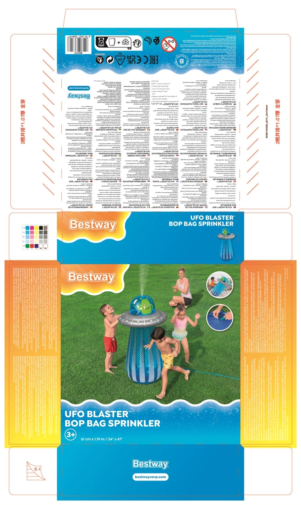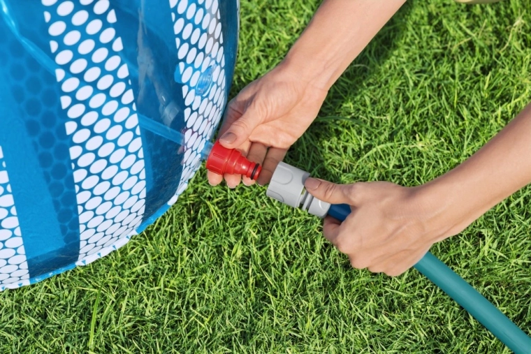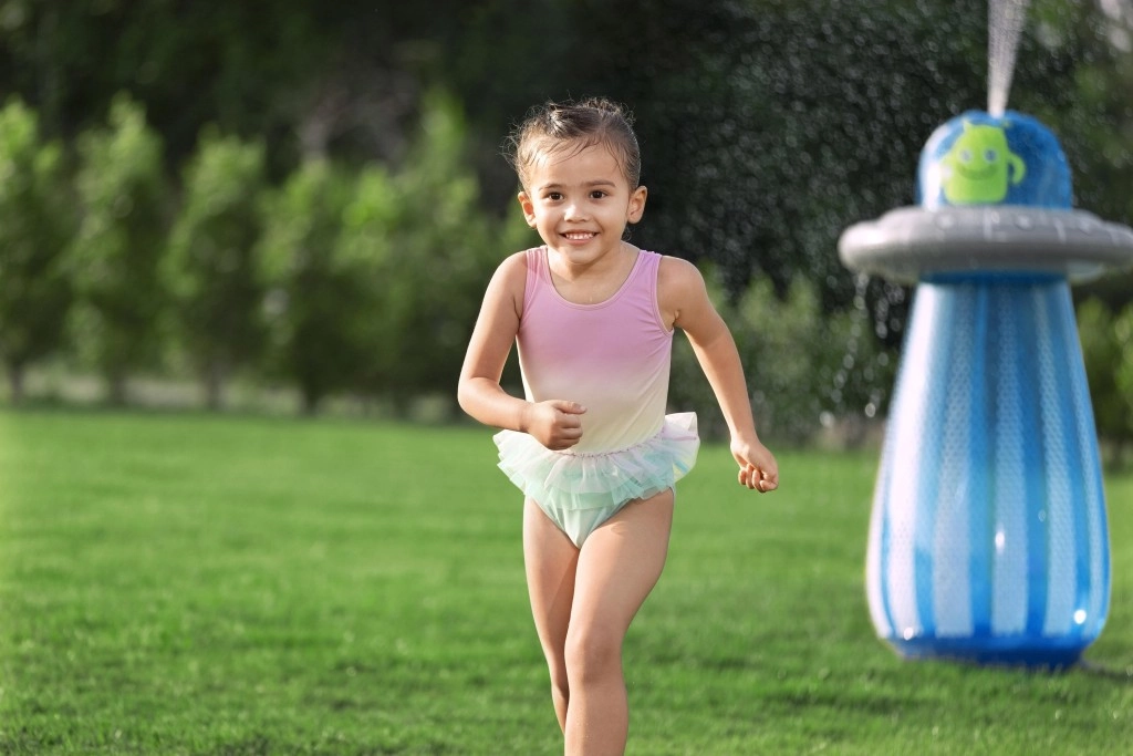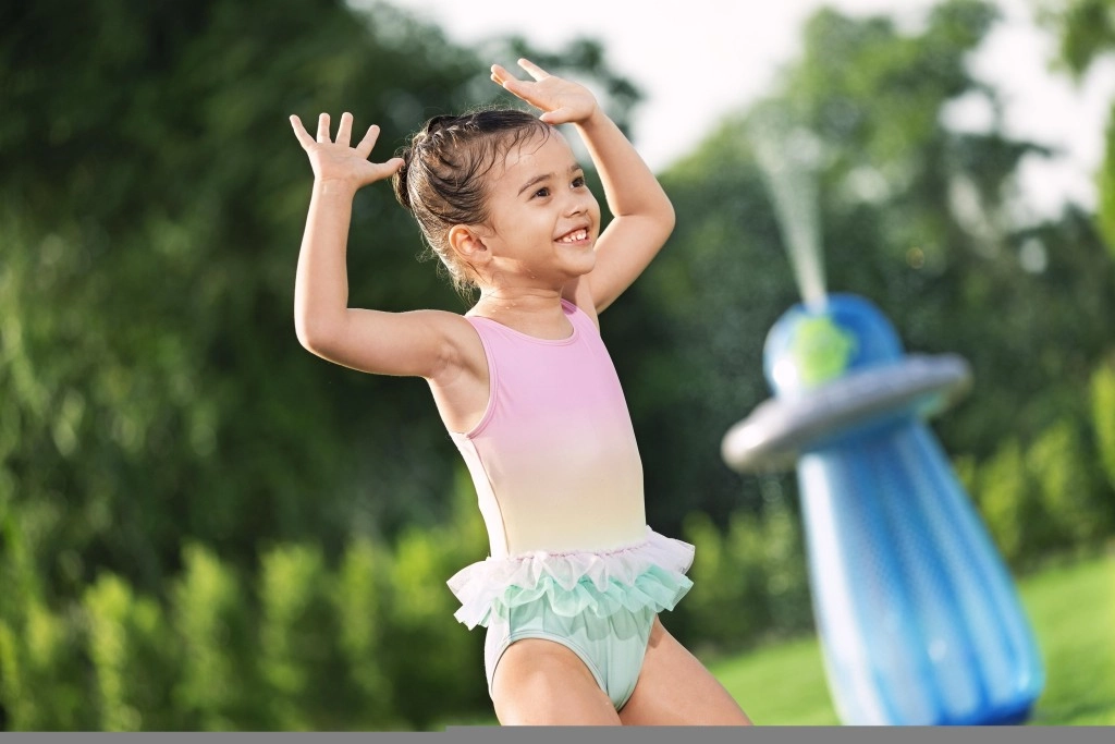 După conectarea la un furtun de grădină standard, din partea superioară a UFO-ului pornește un stropitor răcoritor, care creează o fântână jucăușă pentru copii.
