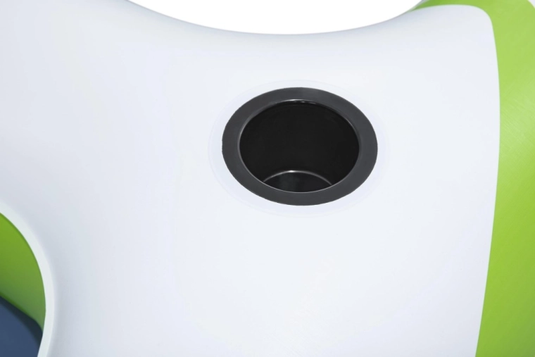 Bucurați-vă de băutura preferată depozitată în siguranță în suporturile integrate. Mânerele solide și coarda perimetrală facilitează urcarea și transportul.