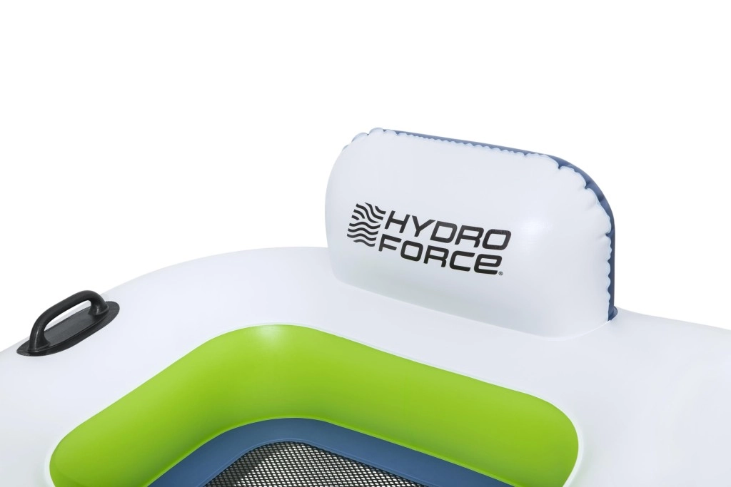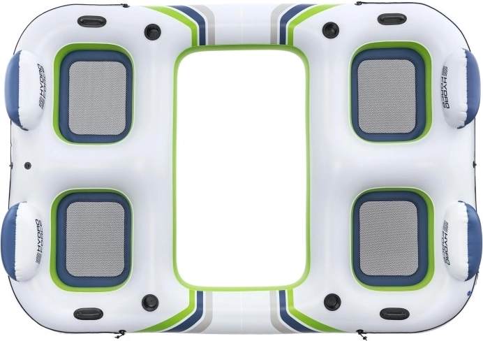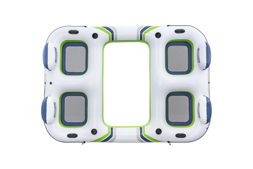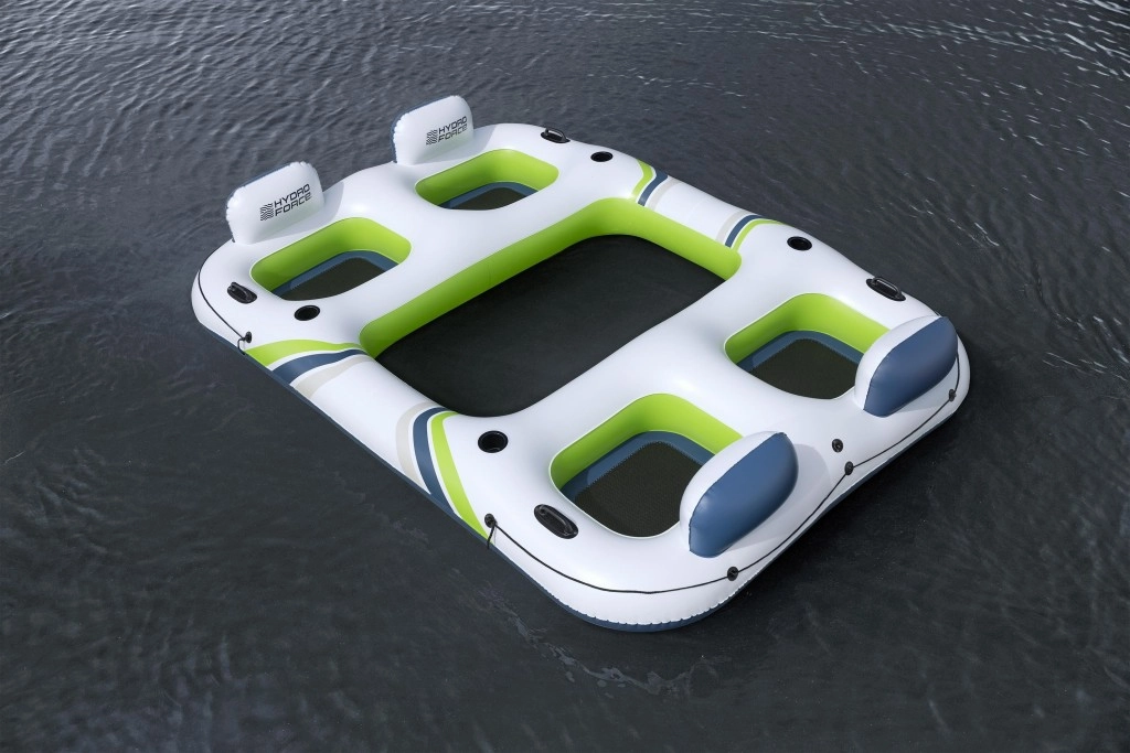 Insula gonflabilă mare HYDRO‑FORCE este ideală pentru relaxare pe lac, la mare sau în piscină. Cele patru scaune ergonomice cu plasă răcoresc plăcut picioarele, iar deschiderea centrală permite răcorirea oricând pe parcursul zilei. Datorită mai multor camere de aer, mânerelor solide și corzii perimetrale, urcarea și manevrarea pe apă sunt simple și stabile.