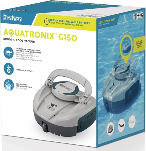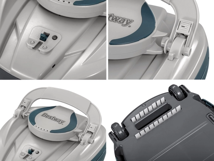 Aspiratorul robotizat BESTWAY AquaTronix G150 aduce o întreținere confortabilă și eficientă a piscinei datorită funcționării complet fără cabluri. Senzorii de apă inteligenți și duzele direcționale asigură deplasarea fiabilă pe fund și pornirea automată la scufundare, precum și oprirea la scoaterea din apă. Coșul de filtrare de 2,0 l se scoate și se golește în doar câteva secunde.