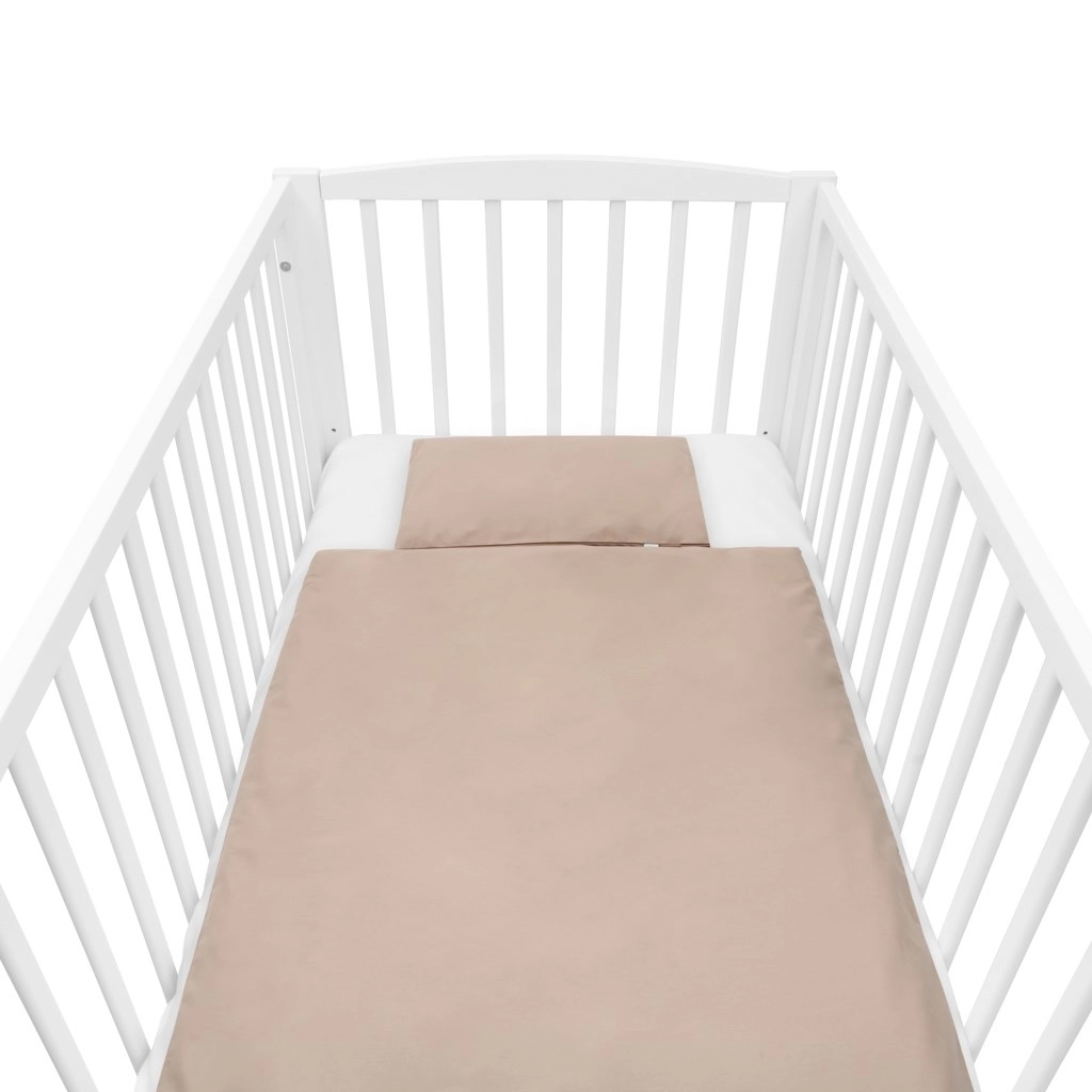 Set moale pentru pătuț în nuanța cappuccino, conține pernă și pilotă cu umplutură antialergică. Husa din 100% bumbac este delicată cu pielea sensibilă, iar umplutura cu înălțimea de 3 cm ține plăcut de cald chiar și în zilele mai răcoroase. Întreținere ușoară – se spală la mașină.