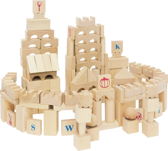 Descoperiți distracția atemporală cu setul mare de cărămizi din lemn natural. Cu 220 de forme variate, copiii pot construi cu ușurință castele, turnuri, poduri și chiar orașe întregi. Suprafața netedă și prelucrarea de calitate asigură jocul în siguranță, în timp ce literele, numerele și simbolurile de pe anumite piese susțin învățarea naturală prin joc.