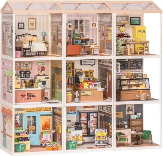 Extindeți micile dumneavoastră magazine, buticuri sau librării din seria SUPER CREATOR cu un acoperiș transparent care conectează modulele într-un singur ansamblu. Capacul transparent permite vizualizarea interiorului de sus și oferă totodată protecție împotriva prafului. Datorită sistemului simplu de fixare prin apăsare, îl atașați și înlocuiți ușor, păstrând un aspect unitar și realist al străzii sau al centrului comercial pe mai multe niveluri.