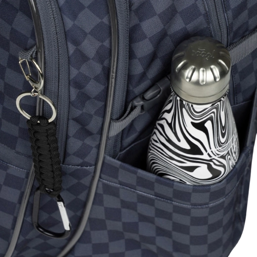 Fabricat din material reciclat, impermeabil, cu certificare GRS. Fermoarele fiabile YKK și execuția de calitate rezistă utilizării zilnice la școală.
