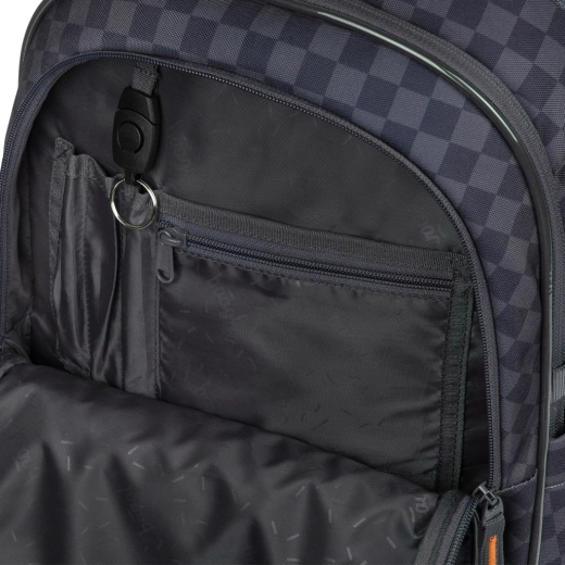 Trei compartimente separate, organizator interior și buzunar capitonat pentru laptop păstrează caietele, manualele și electronicele în siguranță și bine ordonate.