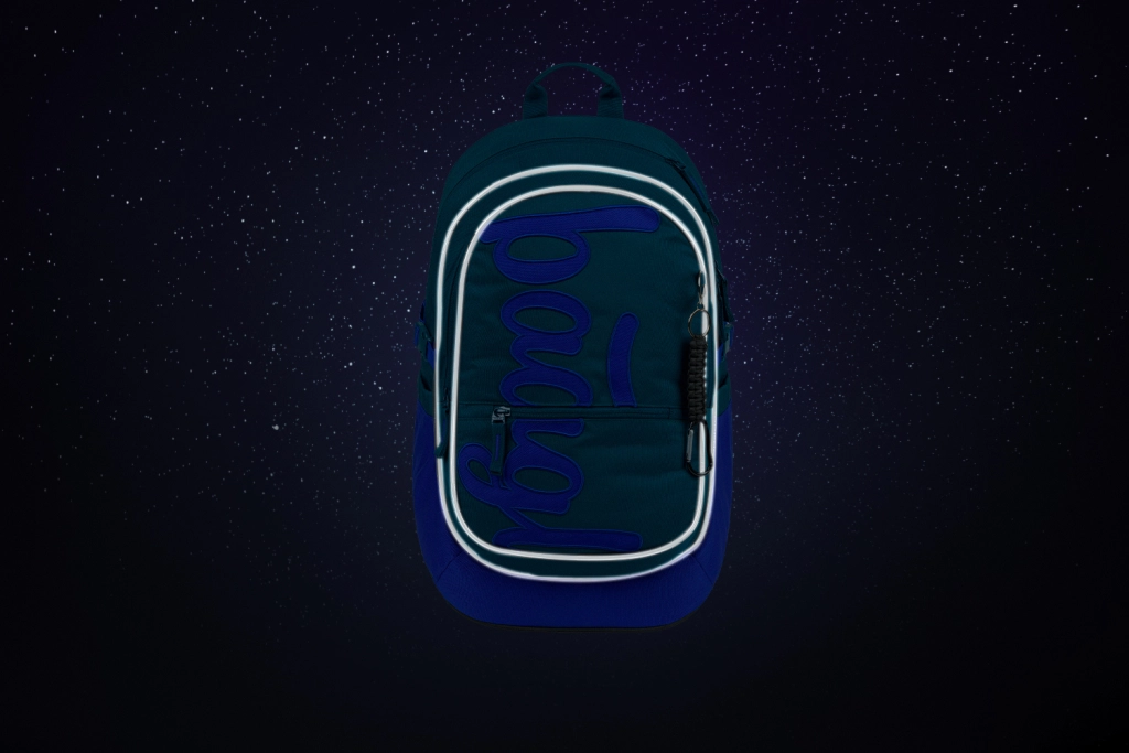 Set școlar practic BAAGL pentru elevi de la clasa a 3‑a, include rucsacul școlar Core Logo ergonomic cu buzunar pentru laptop de 15", penar cu fermoar încăpător și săculeț cu șnur rezistent. Fabricat din materiale reciclate, impermeabile cu certificare GRS, fermoare de calitate YKK și elemente reflectorizante pentru siguranță.