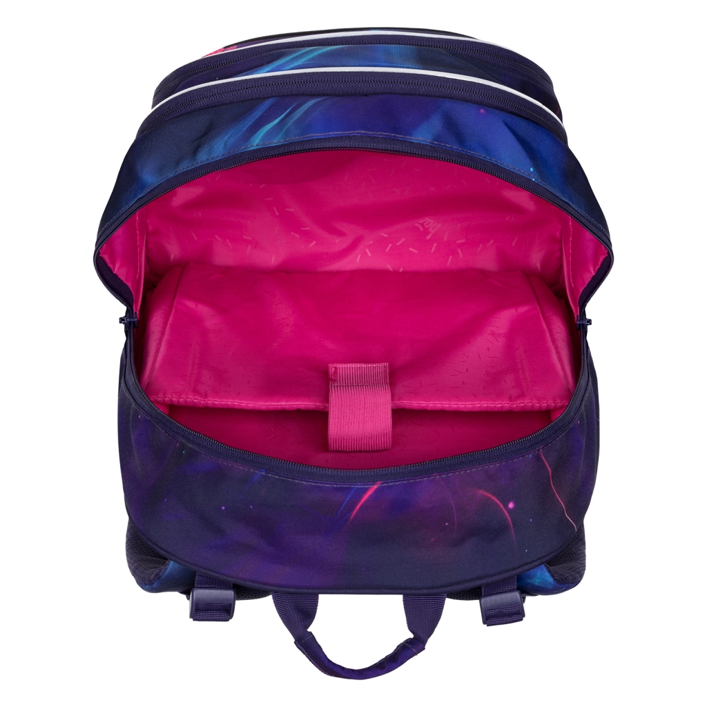 Spate anatomic, cu ventilație, bretele reglabile și curea de piept asigură o purtare confortabilă și sănătoasă de la clasa a 3‑a. Construcție ușoară (900 g) cu capacitate de încărcare de 7 kg.