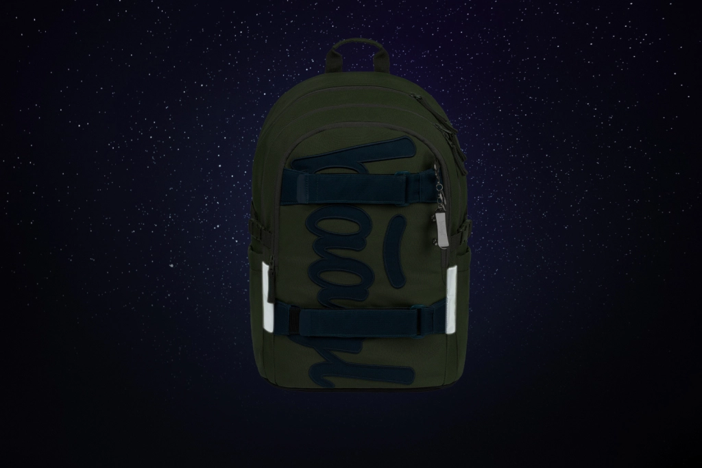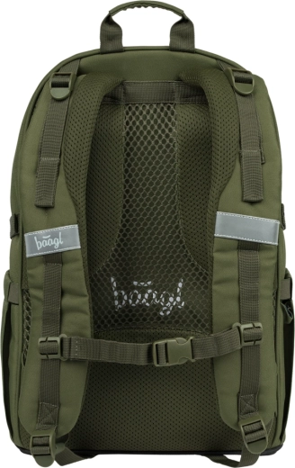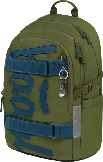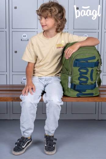 Rucsacul școlar BAAGL Skate Olive GRS, ușor și rezistent, este ideal pentru elevii de la clasa a 3‑a. Oferă spate modelat anatomic, 3 compartimente spațioase, buzunar căptușit pentru laptop de 15", chingi pentru prinderea skateboardului și numeroase elemente reflectorizante pentru siguranță. Fabricat din material reciclat, impermeabil cu fermoare de calitate YKK.