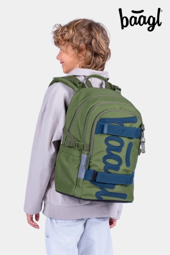 BAAGL Skate Olive GRS este un rucsac școlar modern conceput pentru confort și siguranță zilnică. Datorită greutății sub 900 g și spatelui modelat anatomic cu întăritură lombară, se potrivește excelent copiilor și le protejează spatele. Trei compartimente separate cu organizator practic păstrează manualele, caietele și accesoriile bine ordonate, iar buzunarul căptușit găzduiește în siguranță un laptop sau o tabletă de 15".