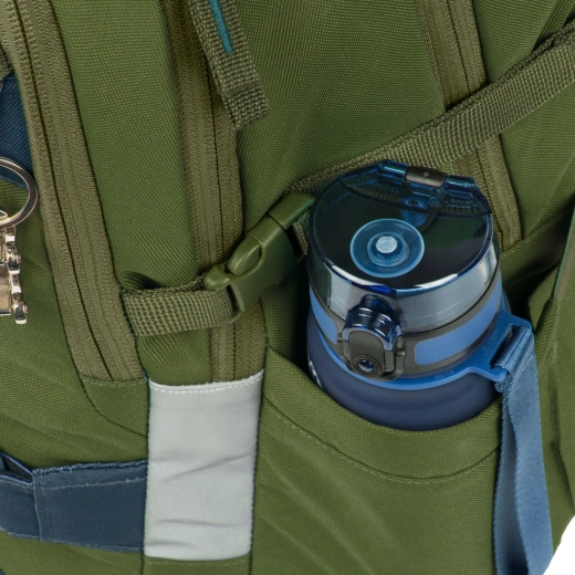 Rucsacul SKATE OLIVE are spate cu formă anatomică și întăritură lombară, chingi de compresie complet reglabile și trei compartimente separate. În interior găsiți un buzunar capitonat pentru laptop de 15" sau tabletă și un organizer practic. Buzunarele laterale încap o sticlă, iar elementele reflectorizante sporesc vizibilitatea.