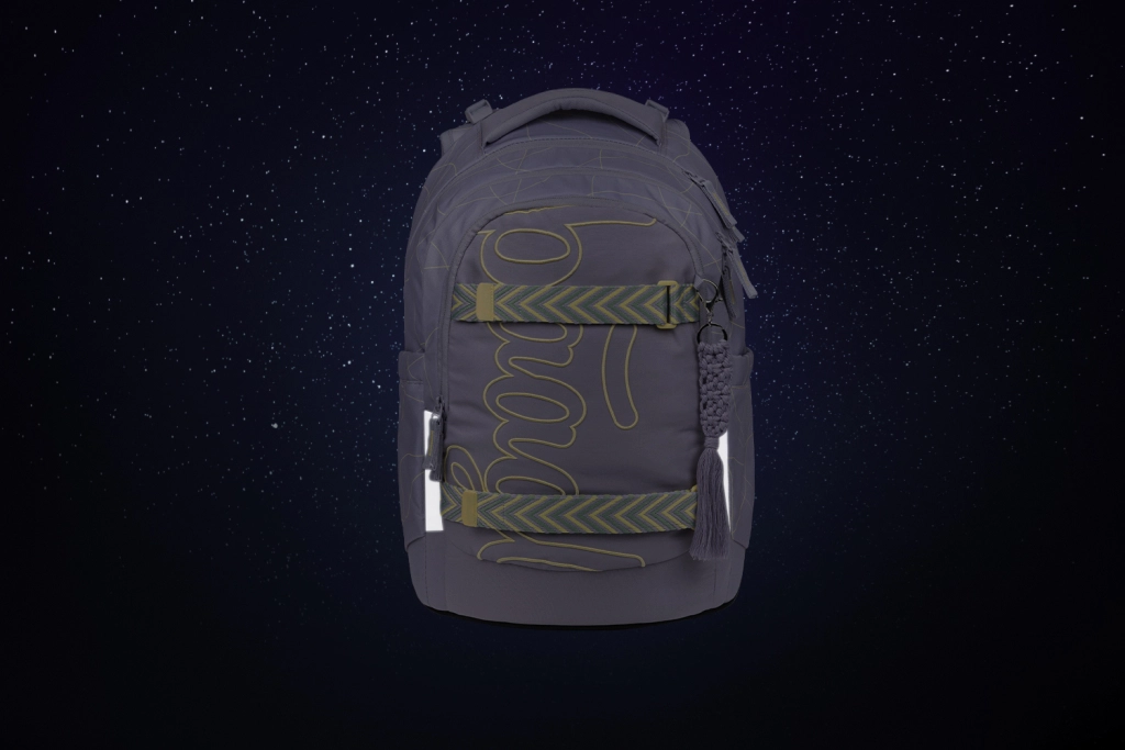 Configurația cu trei compartimente, organizerul clar, buzunarul catifelat pentru laptop sau tabletă și fermoarele YKK cu dublu sens asigură acces rapid și depozitare sigură pentru rechizite și electronice. Buzunarele laterale din material rezistent găzduiesc sticla de apă și sunt asortate cu designul rucsacului. Materialul durabil, impermeabil, cu certificare GRS și elementele reflectorizante pronunțate sporesc siguranța și grija față de mediu.