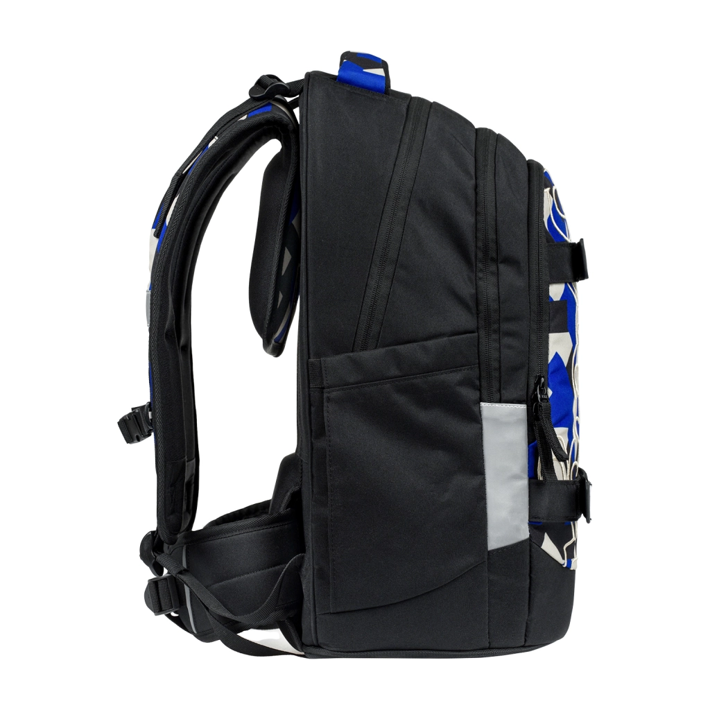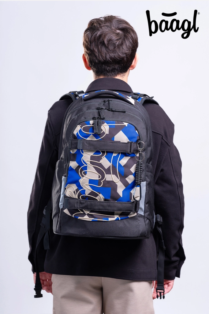 Setul școlar BAAGL Skate Max Variety este alegerea ideală pentru elevi de la clasa a 3‑a și pentru studenți, până la înălțimea de 185 cm. Rucsacul ușor (1150 g) cu sistem dorsal glisant se ajustează pe până la patru mărimi, are centură lombară detașabilă, întăritură din spumă EVA și mâner ranforsat cu capacitate de până la 8 kg. Materialul reciclat, rezistent la apă, și elementele reflectorizante asigură durabilitate și siguranță pe drumul către școală.
