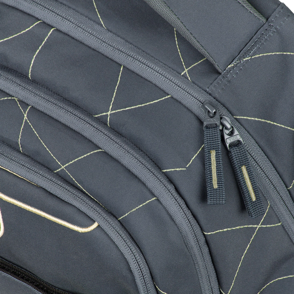 Compartimentare în trei secțiuni, buzunar catifelat pentru laptop sau tabletă și fermoare YKK cu dublu sens pentru acces rapid și depozitare sigură a rechizitelor.