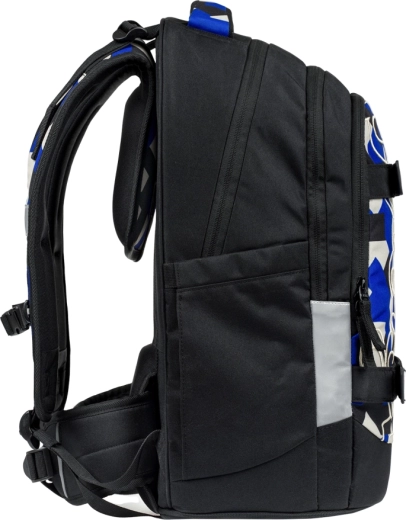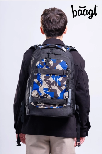 Setul școlar BAAGL Skate Max Variety este conceput pentru copii de la cca clasa a 3‑a până la studenți. Piesa principală este rucsacul compact din material reciclat, impermeabil, cu sistem de spate reglabil pentru înălțimi 135–185 cm. Întăriturile EVA mențin forma, centura lombară detașabilă ușurează spatele, iar numeroasele elemente reflectorizante sporesc vizibilitatea. Compartimentarea pe trei zone, cu buzunar catifelat pentru laptop, protejează electronicele, buzunarele laterale încap o sticlă, iar fermoarele YKK cu dublu sens facilitează accesul.