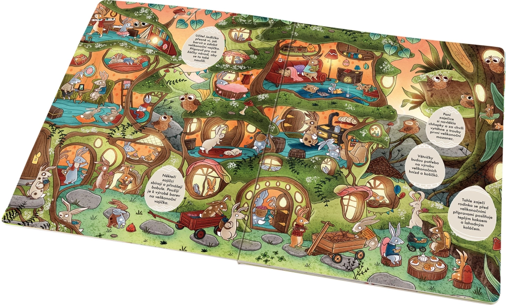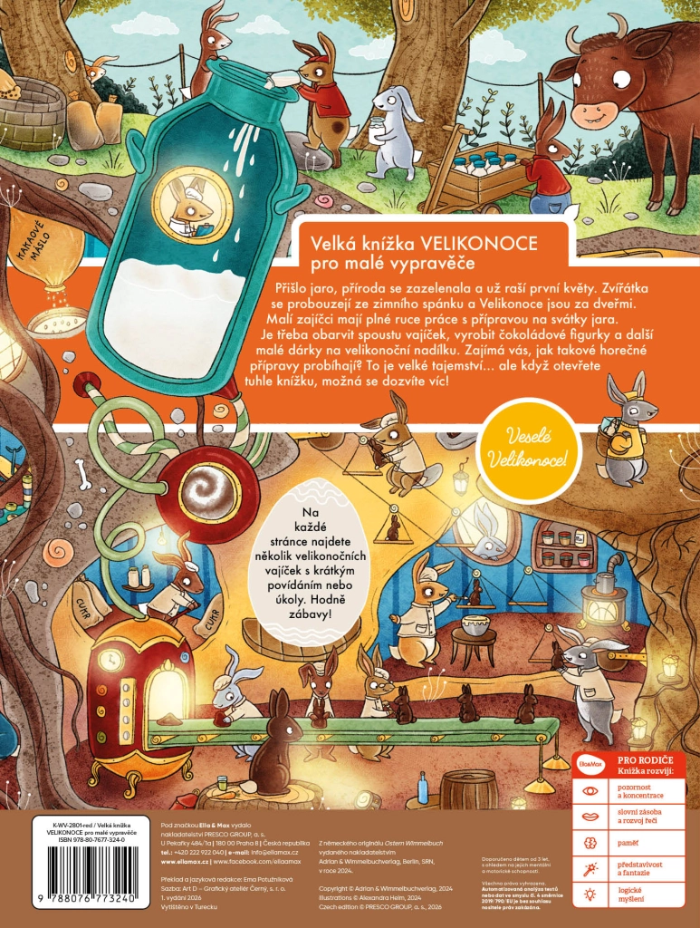 Pe fiecare pagină, copiii descoperă mai multe ouă de Paște cu texte scurte, sarcini și mici provocări. Datorită acestui lucru, cartea este ideală atât pentru lectură împreună, cât și pentru explorare independentă.