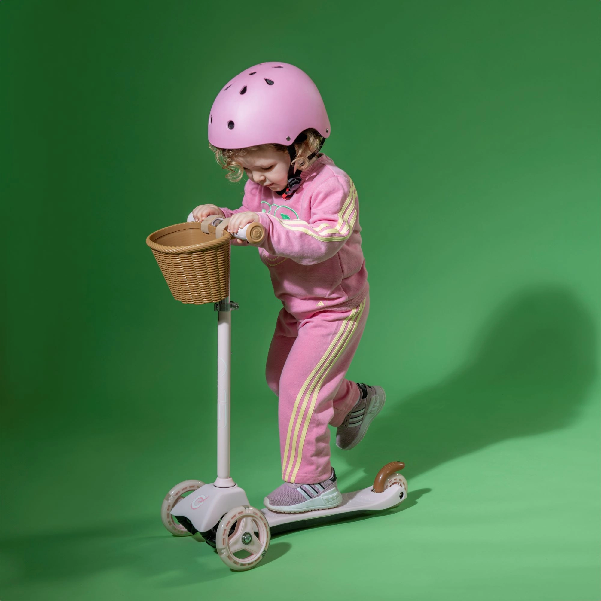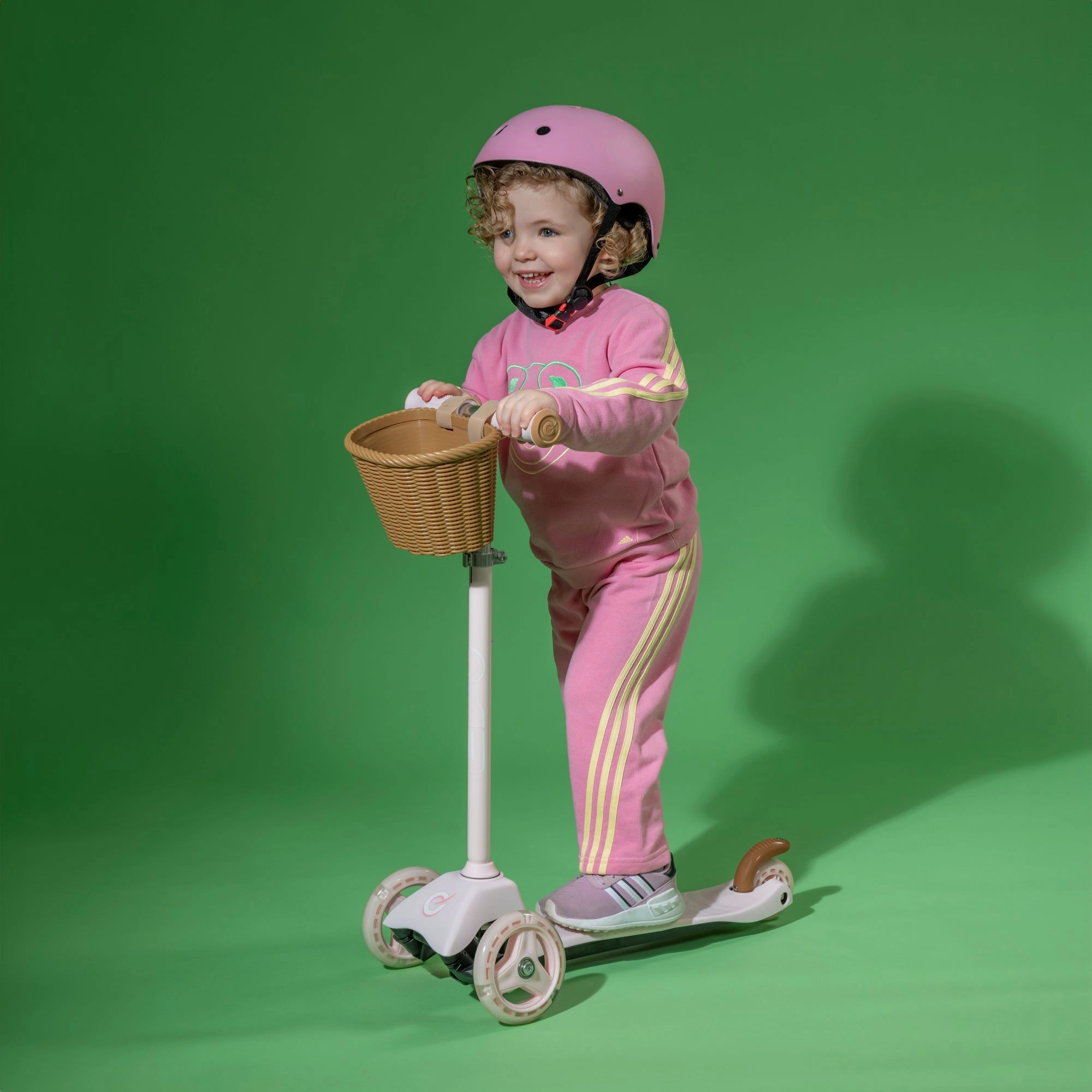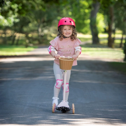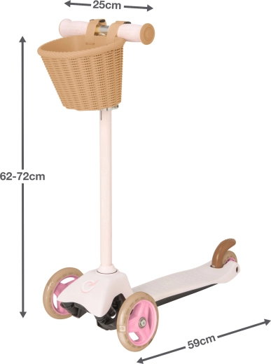 Coșul detașabil de pe ghidon permite să iei oriunde micile lucruri preferate. Înălțimea reglabilă a ghidonului 62–72 cm și construcția ușoară facilitează controlul și transportul. Datorită atrăgătoarei culori roz, copiii o vor îndrăgi rapid, iar părinții vor aprecia detaliile de siguranță bine gândite.