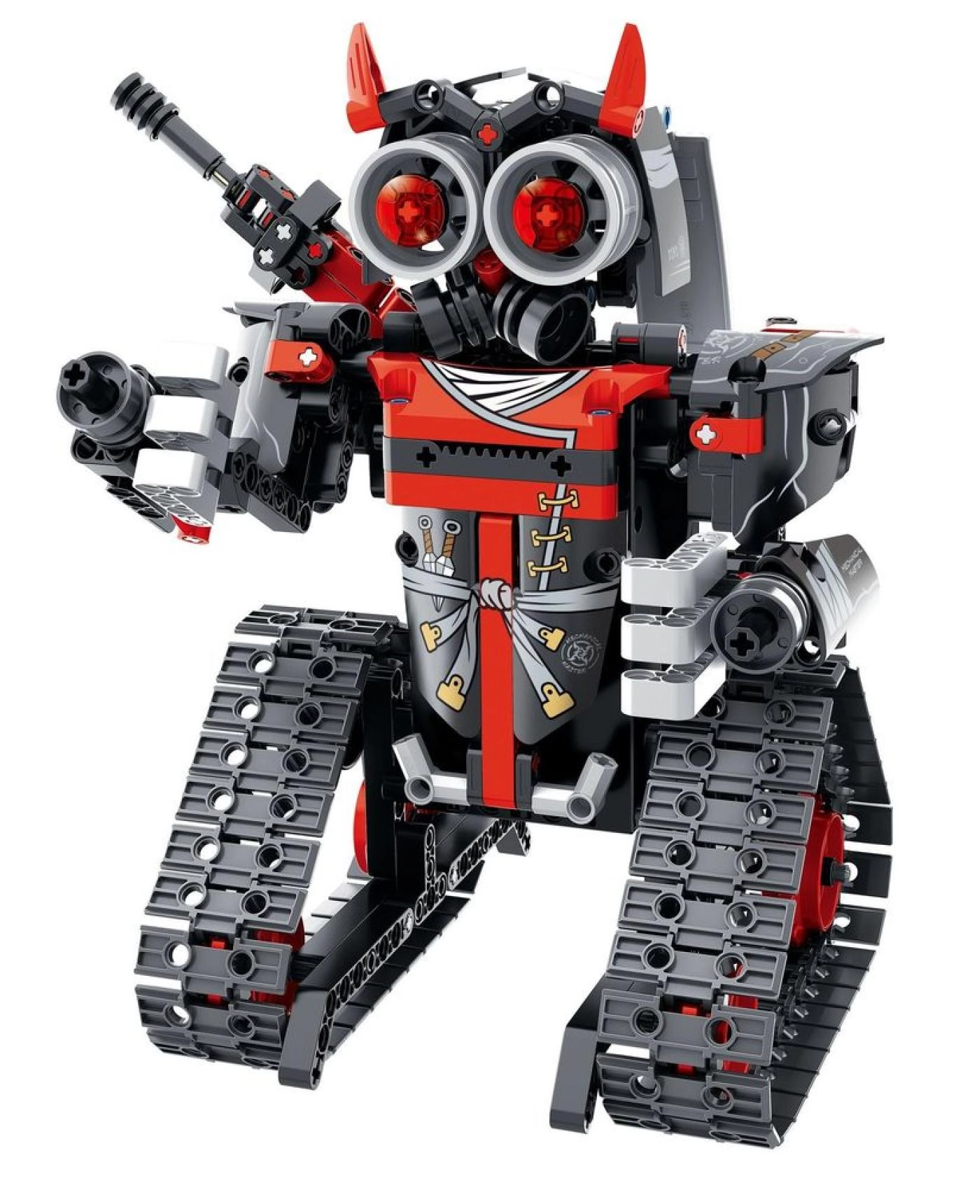 Acest set de construcție 3‑în‑1 îmbină distracția cu învățarea. Copiii pot construi un robot impresionant pe șenile sau utilaje alternative pe șenile, apoi le pot controla cu ajutorul telecomenzii de 2,4 GHz sau prin aplicația de pe telefon. Șasiul pe șenile asigură deplasare sigură chiar și pe suprafețe mai dificile, iar elementele mecanice permit viraje line, manevrabilitate și joacă plină de acțiune.