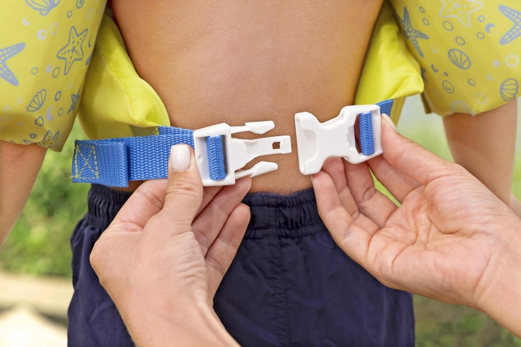 - Închidere sigură la spate: copilul nu poate desface singur vesta.