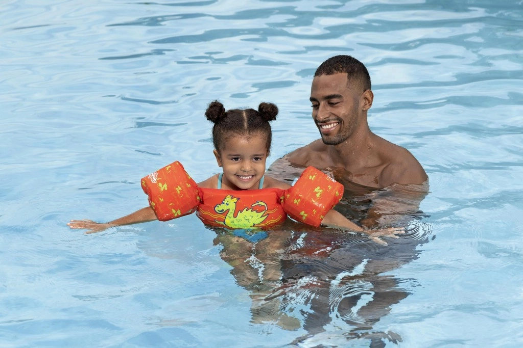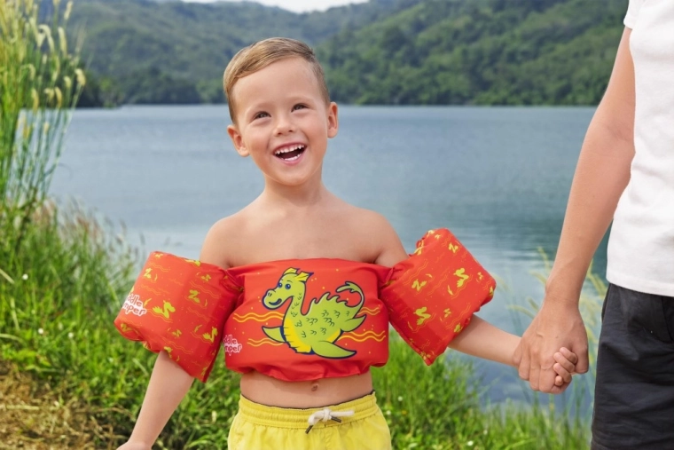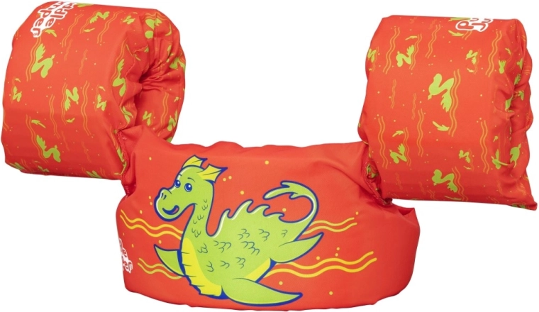 Însoțitor sigur și jucăuș pentru apă, destinat copiilor de 2–6 ani: vestă de înot pentru copii cu mânecuțe și motiv dragon verde, în culoare portocaliu intens. Oferă flotabilitate excelentă, material confortabil și cataramă dorsală reglabilă pentru o fixare sigură. Ideală pentru învățarea înotului și joaca în apă, cu capacitate 15–30 kg pentru un control mai ușor al copilului în apă.