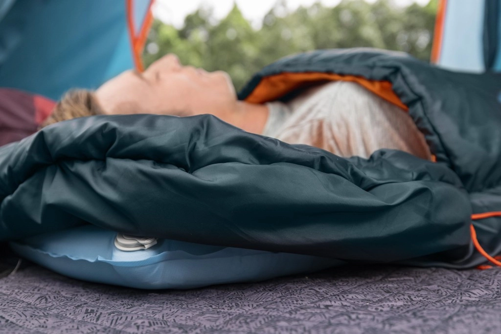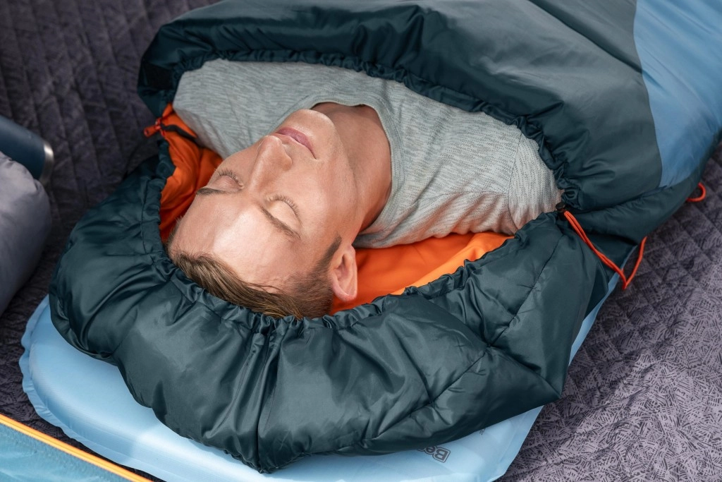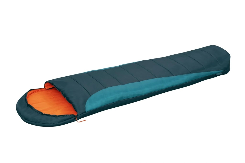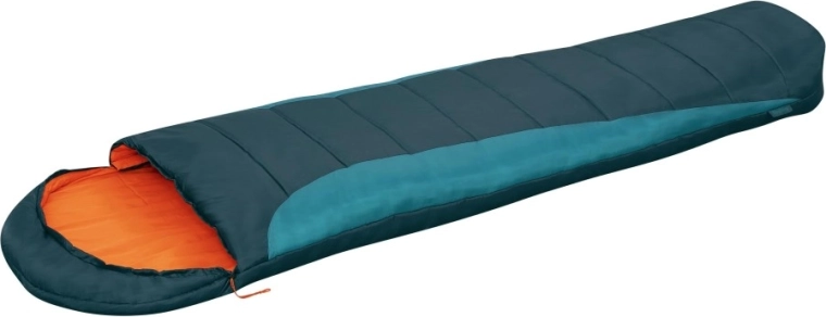 Umplutura monostrat din poliester reciclat 280 g/m² și forma de mumie păstrează căldura acolo unde ai nevoie. Confort 1–6 °C, extrem până la -13 °C.