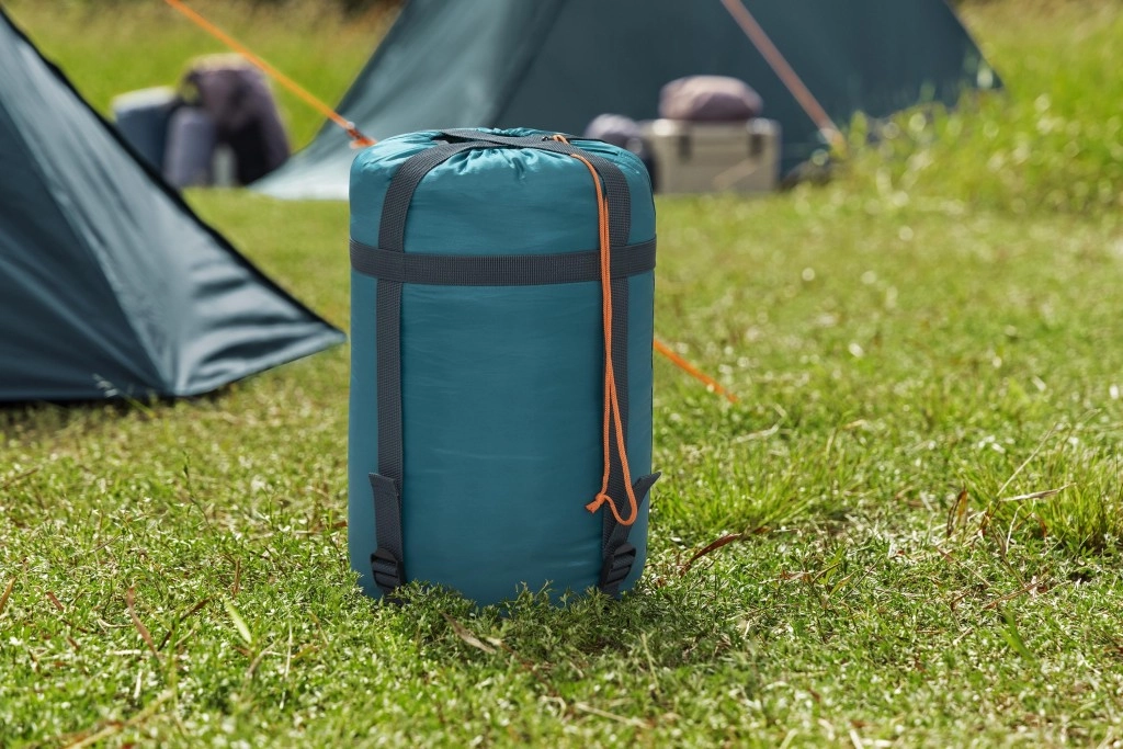 Materiale reciclate cu certificare GRS și husă de compresie pentru dimensiuni mici la transport. Ideal pentru trekking și expediții de mai multe zile.