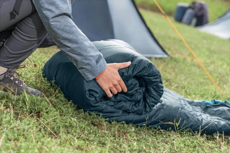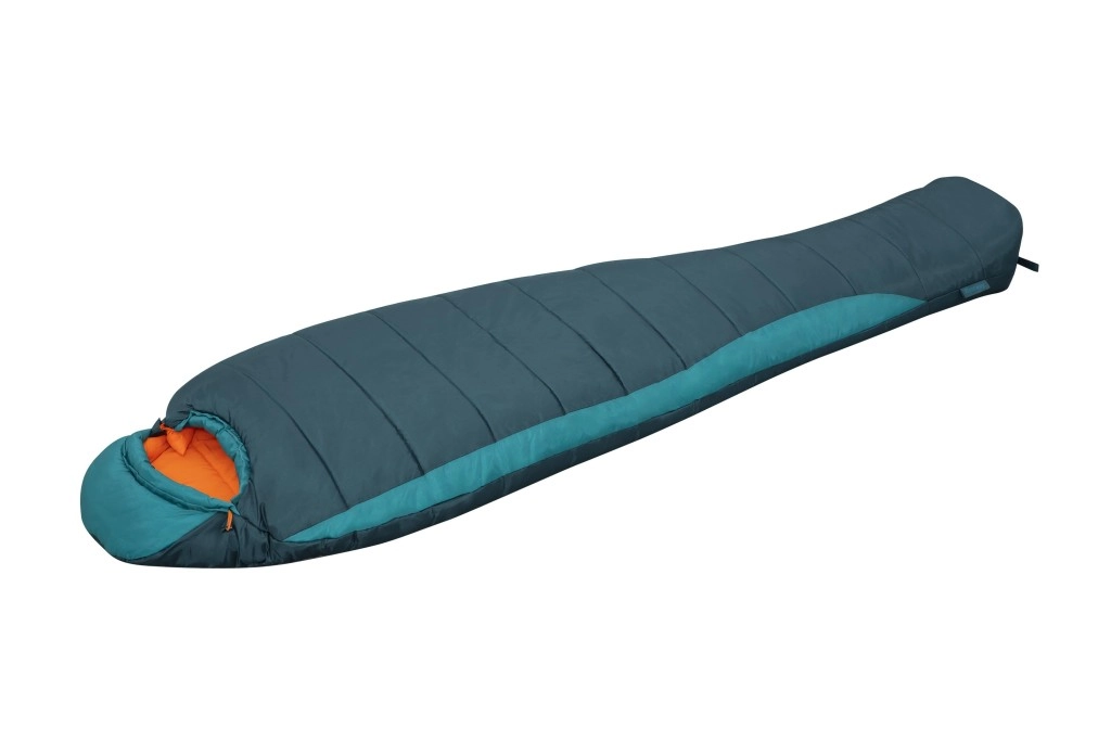 Umplutură dublă reciclată 2 × 150 g/m², temperatură de confort 4 °C și formă tip mumie pentru menținerea eficientă a căldurii. Ideal pentru primăvară, toamnă și ierni blânde.