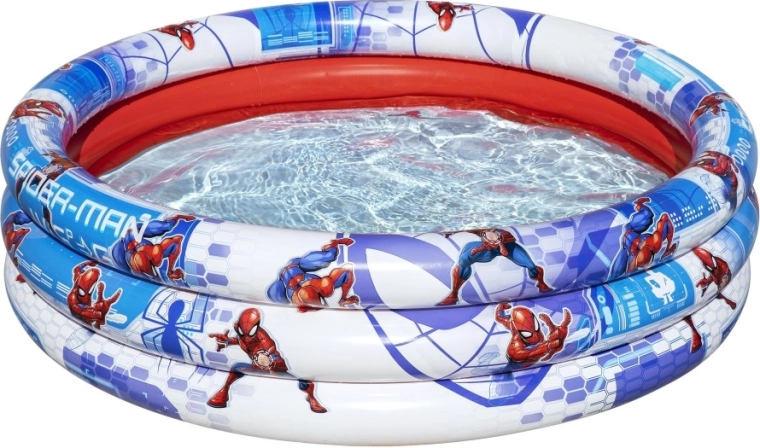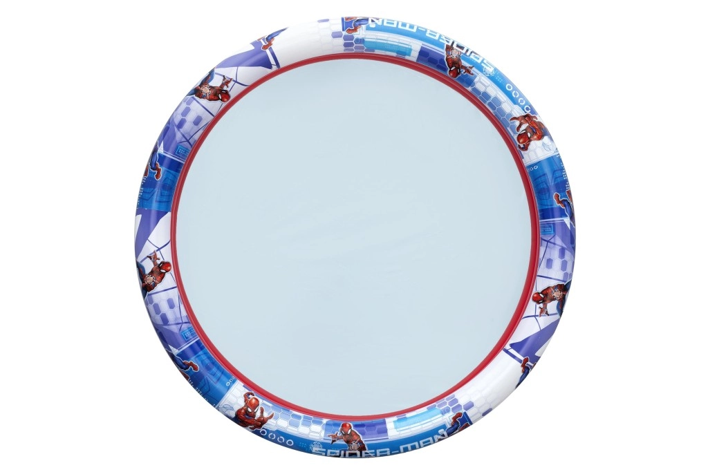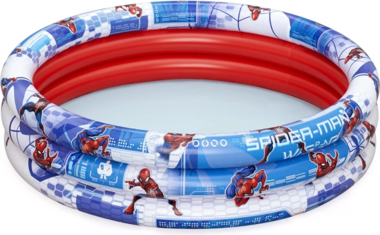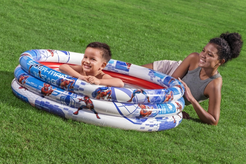 Piscina gonflabilă pentru copii cu imprimeu licențiat SPIDER-MAN este o alegere excelentă pentru zilele toride în grădină. Trei inele gonflabile robuste asigură stabilitate, interiorul roșu plăcut și imprimeul albastru-alb pe circumferință creează un aspect atractiv care îi încântă pe micii supereroi.