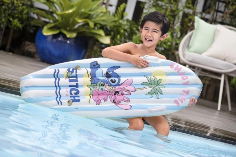 Bucură-te de vară cu plută gonflabilă jucăușă cu supereroul DISNEY Stitch. Ușoară, stabilă și sigură, cu dimensiunile de 114 × 46 cm, este ideală pentru copii de 3–10 ani. Datorită celor două mânere robuste, camerelor de aer multiple și materialului rezistent, oferă siguranță și confort la joacă în piscină sau pe ape liniștite.