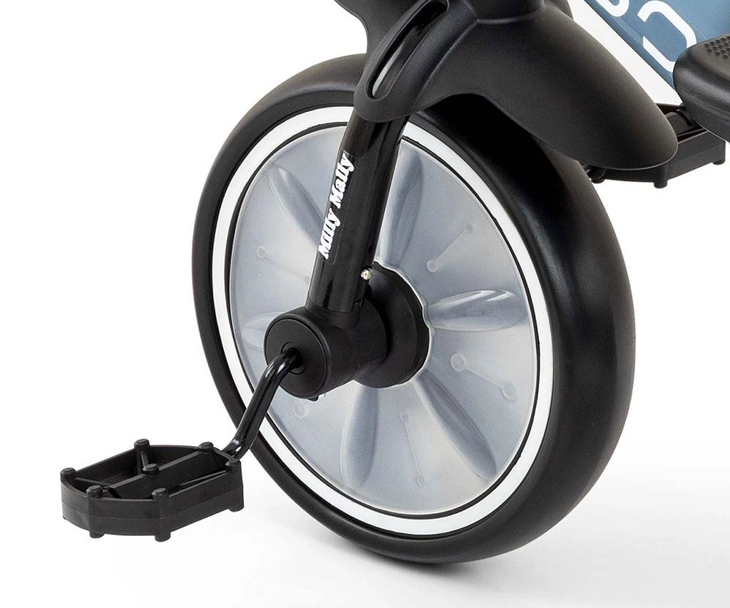 Pedalele de pe roata din față se pot monta sau demonta cu ușurință. Astfel, copilul poate începe ca pe un vehicul de împins și trece treptat la pedalare independentă.