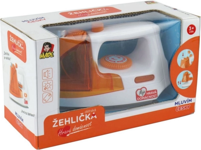 Toate micile ajutoare vor aprecia fierul de călcat cu baterii luxos, care va încânta inima fiecărui copil. Fierul de călcat se încălzește și redă o melodie plăcută împreună cu un mesaj în cehă.