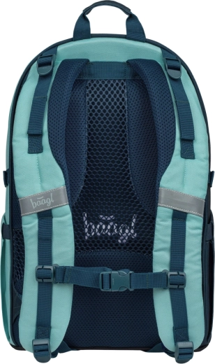 Set școlar BAAGL asortat cu stil pentru elevi mai mari și studenți, include un rucsac ușor Skate cu prindere pentru skateboard, un penar încăpător și o geantă sport pliabilă Hoop. Toate din materiale reciclate, rezistente la apă, cu certificare GRS, cu elemente reflectorizante și fermoare YKK fiabile.