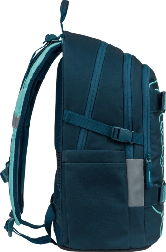 Spate modelat anatomic cu întăritură, bretele compresive complet reglabile și trei compartimente separate cu organizator. Buzunar capitonat pentru laptop de 15", buzunare laterale pentru sticlă și elemente reflectorizante pentru vizibilitate sporită. Fermoare YKK de calitate și chingi pentru prinderea skateboardului.