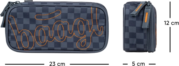 Penarul școlar BAAGL, stilat și rezistent, oferă design compact cu compartiment principal spațios, dublă clapetă rabatabilă și buzunar interior. Fermoarele YKK fiabile și tragătoarele robuste asigură durabilitate îndelungată. Fabricat din material reciclat cu certificare GRS. Penarul este livrat fără rechizite.