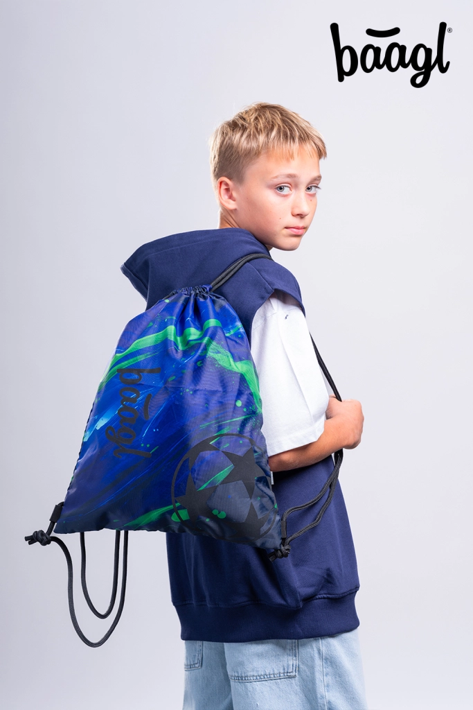 Săculețul sport practic Baagl cu motivul Football Champion este ideal pentru încălțăminte și mărunțișuri pentru antrenament, școală și timpul liber. Este realizat din material rezistent și lavabil, are închidere fiabilă cu șnururi rezistente și poate fi purtat confortabil pe spate. Datorită certificării GRS, respectă standarde stricte ecologice și sociale.