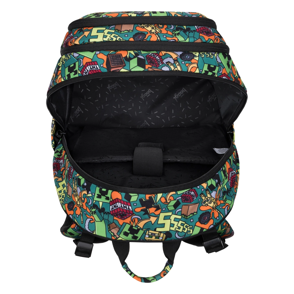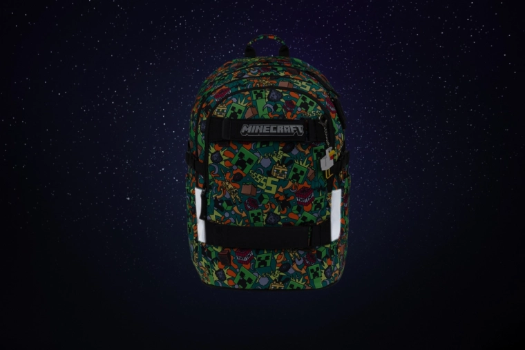 Datorită spatelui cu formă anatomică, bretelelor reglabile și elementelor reflectorizante, setul este sigur și confortabil la purtare. Toate piesele sunt din material reciclat rezistent la apă și folosesc fermoare YKK fiabile pentru o durabilitate îndelungată. Designul unitar cu motive MINECRAFT îți permite să asortezi ușor totul într-un singur stil.