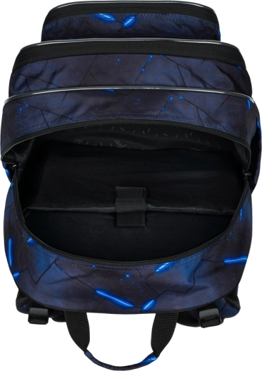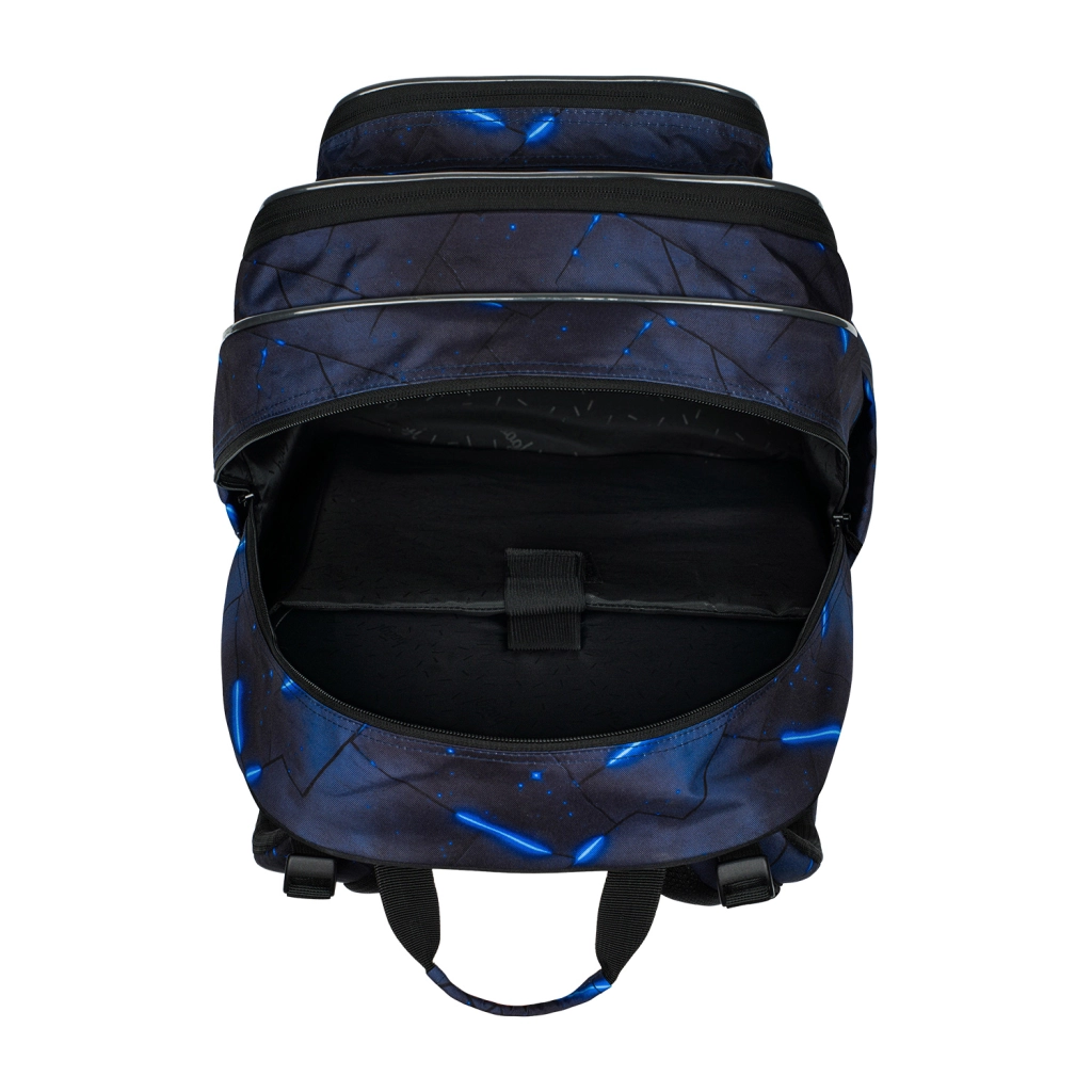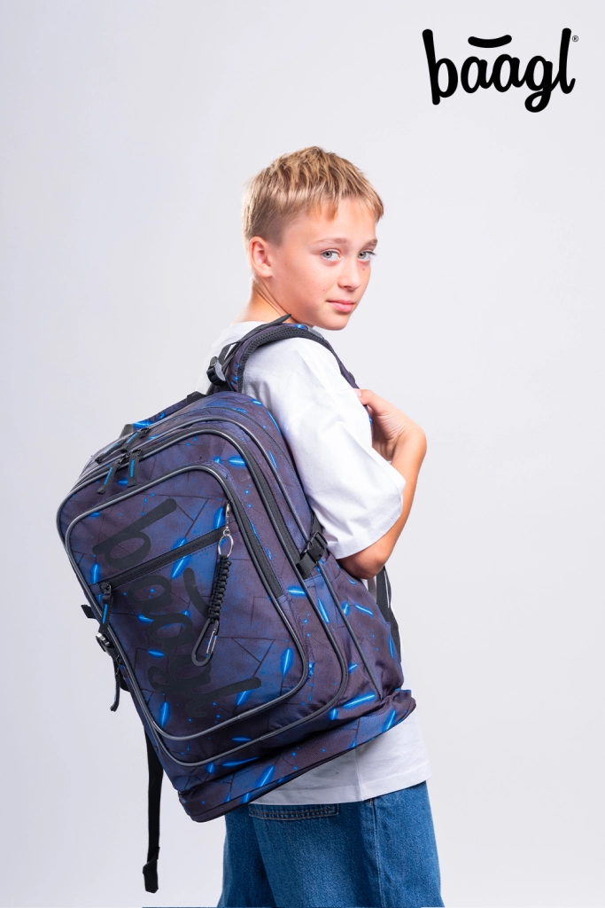 Setul școlar BAAGL Cubic Flash, în design geometric bleumarin cu accente luminoase, armonizează elegant întreaga echipare pentru școală și timp liber. Vedeta principală este rucsacul ergonomic cu trei compartimente, organizer bine gândit, buzunar ascuns întărit și elemente reflectorizante pentru siguranță. Datorită greutății reduse de 1 200 g, bretelelor de umăr, toracice și de compresie reglabile și panoului dorsal respirabil, se poartă confortabil toată ziua.