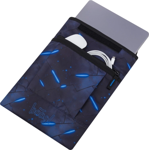 Datorită gamei variate de modele, vă puteți asorta ușor husa cu alte produse BAAGL. Buzunarul frontal găzduiește încărcătorul, mouse-ul sau cablurile, astfel încât aveți totul la îndemână. Materialul respectă Global Recycled Standard (GRS), confirmând grija pentru natură și producția responsabilă.