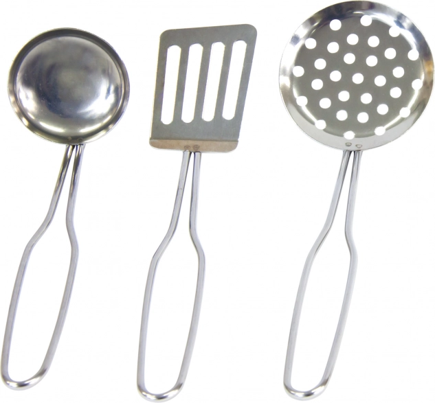 Polonicul, strecurătoarea, paleta și mănușa permit copiilor să stăpânească toate activitățile de gătit în timpul jocului.