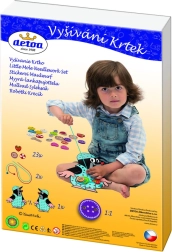 Această jucărie de brodat unică, sub forma legendarului personaj Krtek, oferă distracție și învață abilități importante. Copiii au posibilitatea de a crea propriile modele folosind piese de lemn de diferite forme și imprimeuri care se fixează pe un șablon din carton.