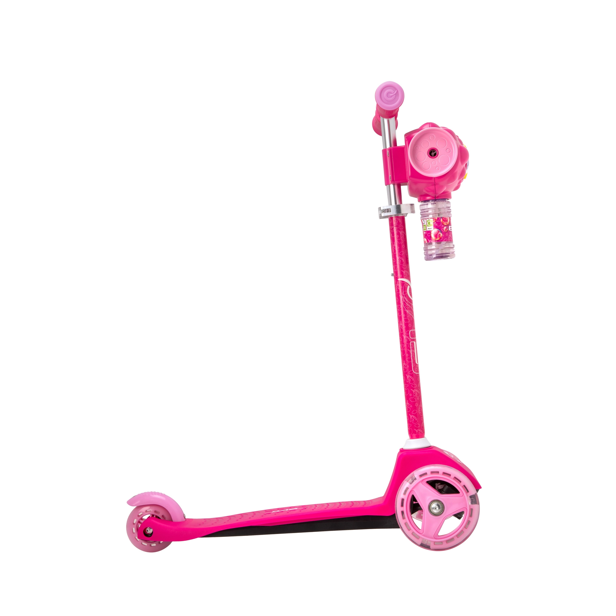 Adevărata atracție este generatorul de bule integrat, care creează bule în timpul mersului și transformă fiecare plimbare într-o distracție plină de bucurie. Platforma antiderapantă, mânerele moi din TPR și frâna de picior spate sporesc siguranța și confortul la manevrare.
