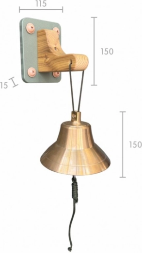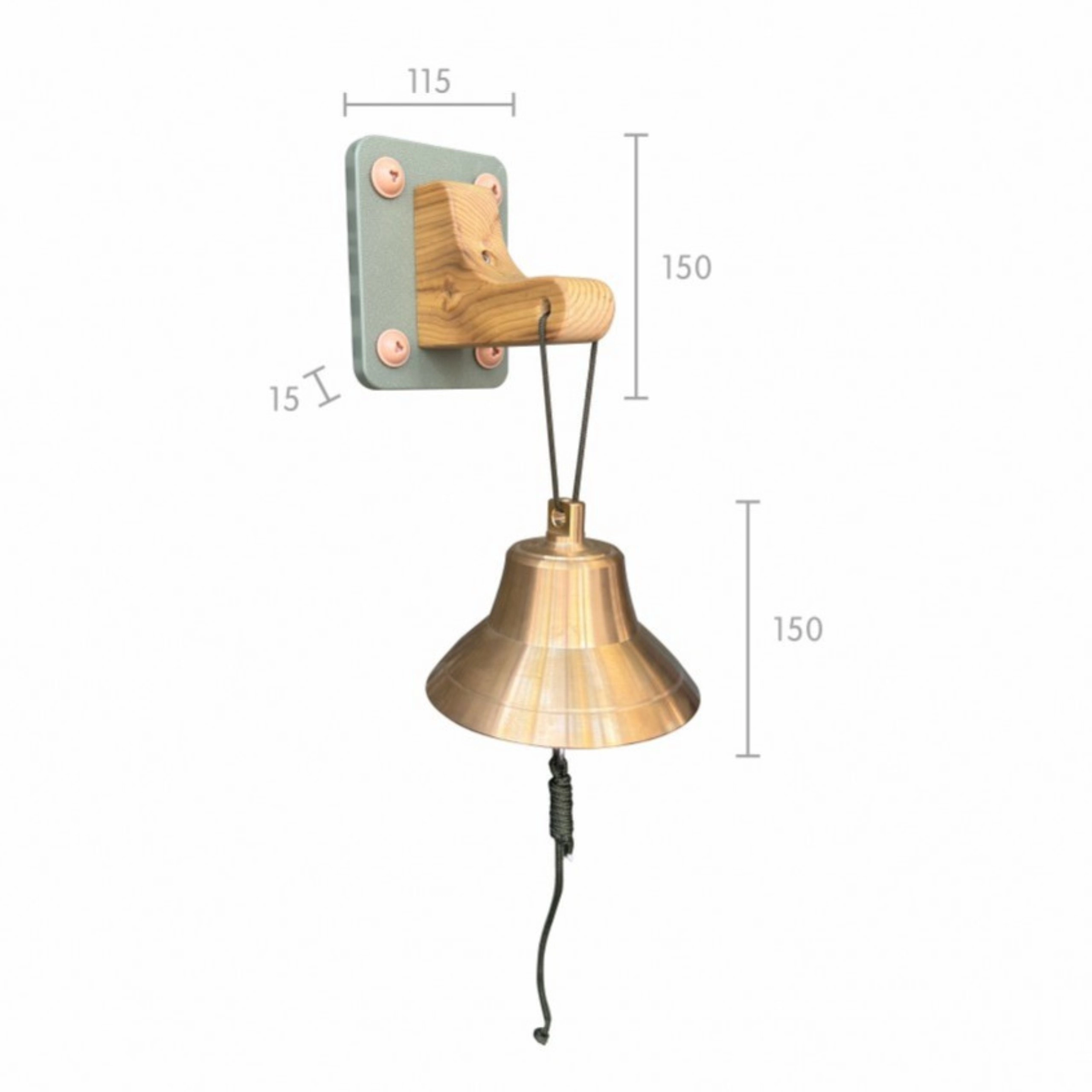- Clopot din bronz (15 cm), suport de perete din lemn, sforicică rezistentă